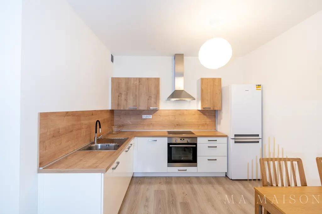 Byt se pronajímá kompletně vybavený nábytkem i spotřebiči a skládá se z vstupní předsíně, obýváku s kuchyni, dětského pokoje, ložnice, koupelny, WC a komory. V obývací části se nachází stylový rozkládací gauč, konferenční stolek a sestava skříněk pod TV. Velká a prostorná kuchyň disponuje moderními spotřebiči (trouba, sporák, myčka a lednice s mrazničkou). V dětském pokoji najdete postel s matraci, skříň se zrcadlem, knihovnu a pracovní stůl. V ložnici se nachází manželská postel včetně matrace, velká šatní skříň. V koupelně je vana, 2x umyvadlo, velké zrcadlo, skříňky s úložnými prostory, pračka se sušičkou (2v1). Toaleta je samostatně.
