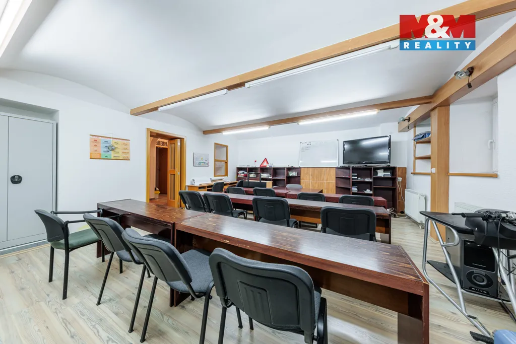 Prostor je dlouhodobě využíván jako autoškola a tomu odpovídá i jeho praktické dispoziční řešení. Nabízí vhodné zázemí pro výuku i administrativu – učebnu pro teoretickou část, kancelářské zázemí a prostor pro jednání s klienty. Celkově působí velmi funkčně a efektivně, což umožňuje okamžité využití nebo jeho snadnou adaptaci dle vlastních potřeb.