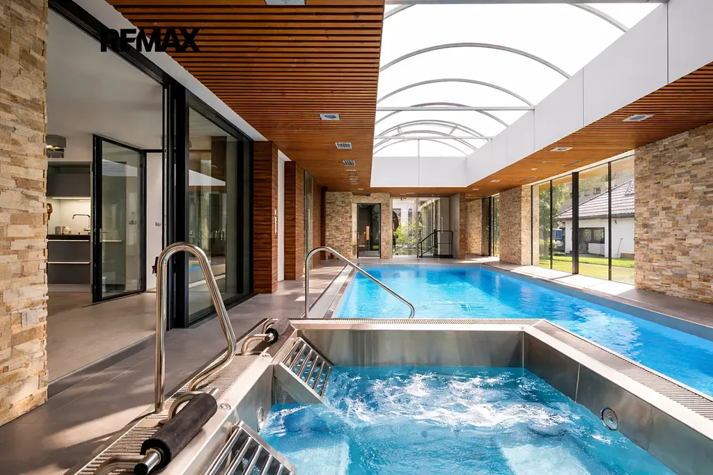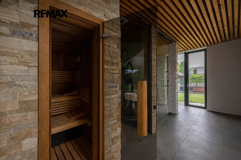 Výjimečná historická vila z roku 1911 (autorem návrhu je architekt Bedřich Karlseder, jeden z nejvýznamnějších představitelů secesní architektury), která prošla kompletní rekonstrukcí v roce 2010, citlivě propojená s moderní přístavbou wellness z roku 2013, představuje harmonické spojení architektonického dědictví, nadčasového designu a nejvyššího komfortu současného bydlení. Již při příchodu zaujme velkoryse prosklený vstupní prostor, který přirozeně propojuje interiér se zahradou, zaplavuje dům denním světlem a vytváří reprezentativní první dojem s atmosférou klidu a elegance. Tato rezidenční nemovitost splňuje nejvyšší nároky na současné bydlení a díky použitým technologiím dosahuje mimořádně úsporná (PENB A). Reprezentativní rezidence nabízí osm prostorných pokojů, čtyři koupelny a samostatné relaxační centrum s krytým bazénem, finskou saunou a vířivkou. Vila je situována uprostřed pečlivě udržované zahrady o rozloze přes 3 300 m² v klidné rezidenční čtvrti města Příbor, pouhé 4 km od Letiště Mošnov. Přízemí vily o ploše téměř 150 m² nabízí reprezentativní obývací pokoj, ložnici, kuchyni se spíží, koupelnu s vanou, sprchovým koutem a toaletou, samostatné WC a dvě vstupní haly. První patro disponuje pracovnou, dětským pokojem, dalším obývacím pokojem, kuchyní, komorou a koupelnou s vanou. Dům je částečně podsklepený; v suterénu se nachází technické zázemí s kotlem, centrálním vysavačem a prádelnou, dále pracovna se sprchovým koutem a šatna. Obytná část je prosklenou chodbou propojena s exkluzivním relaxačním centrem, které bylo realizováno v roce 2013 a nabízí krytý bazén, finskou saunu a vířivku s plně automatizovaným provozem. Součástí je také chodba s toaletou, šatnou a sprchovým koutem. Horní podlaží relaxační části tvoří dvě ložnice, koupelna a technická místnost. Centrum má samostatný vstup a navazuje na něj prostorná zastřešená terasa s grilem a venkovní kuchyní, ideální pro společenská setkání. K nemovitosti náleží dvě garáže s kapacitou pro tři vozy. Kuchyně jsou vybaveny prémiovými spotřebiči Siemens včetně indukční varné desky a vinotéky. Dům je zabezpečen kamerovým systémem, garážová vrata i hlavní brána jsou ovládány dálkově. Vytápění zajišťuje tepelné čerpadlo s možností vytápění plynem nezávisle v obou objektech (v každém i vlastní krb). Na střeše relaxační části je instalována fotovoltaická elektrárna o výkonu 20 kW s bateriovým úložištěm. Zahrada je vybavena automatickým zavlažovacím systémem a veškeré technologie domu – vytápění, voda, elektřina, bazén i zabezpečení – lze komfortně ovládat na dálku prostřednictvím mobilních aplikací. Nemovitost se nachází v klidné slepé ulici, v docházkové vzdálenosti od městského parku, historického centra, obchodů, škol, sportovišť i kulturních zařízení. Příbor, rodiště Sigmunda Freuda, nabízí plnohodnotnou občanskou vybavenost a příjemné prostředí pro rodinné bydlení. Krajské město Ostrava je dostupné přibližně za 20 minut po dálnici D48. Výborná dostupnost vlakem do Prahy - 3 hodiny.