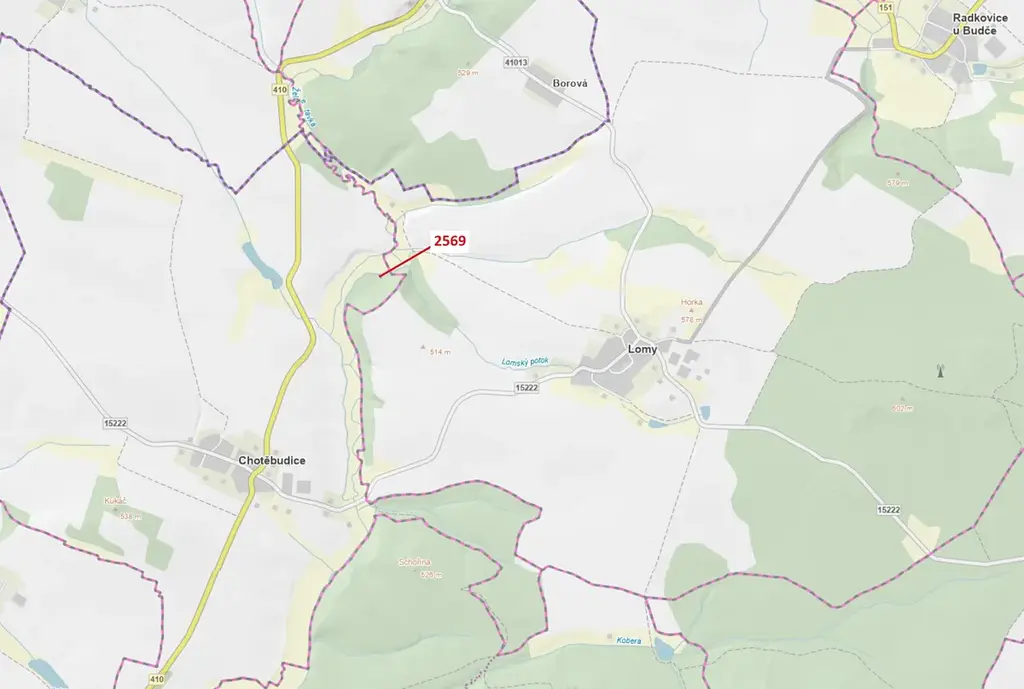 Lesní pozemek o výměře 155 m2, parcelní číslo 2569, podíl 1/1, katastrální území Chotěbudice, obec Chotěbudice, obec s rozšířenou působností Moravské Budějovice, okres Třebíč, Kraj Vysočina.