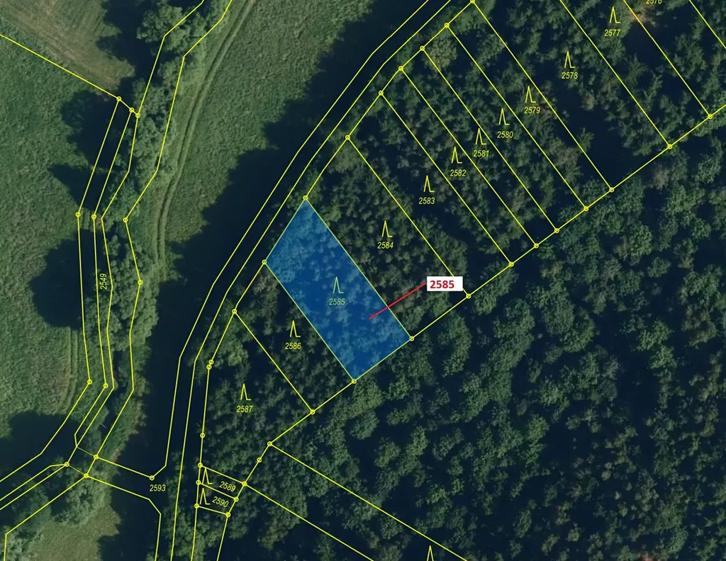 Lesní pozemek o výměře 774 m2, parcelní číslo 2585, podíl 1/1, katastrální území Chotěbudice, obec Chotěbudice, obec s rozšířenou působností Moravské Budějovice, okres Třebíč, Kraj Vysočina.