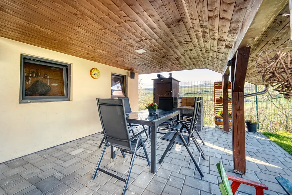 Nabízená nemovitost nabízí klidné moderní bydlení uprostřed přírody, nádherné výhledy z domu a zimní zahrady, s příslušenstvím na uzavřeném pozemku za domem zaručujícím soukromí, pěknou zahradou s možností pěstování ovocných stromů a zřízením zahrádky a bezproblémovým parkováním.