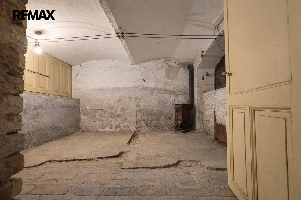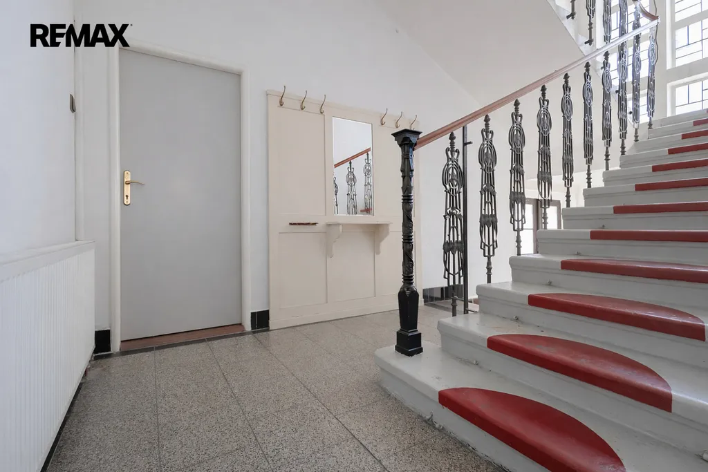 Dům si zachoval původní historické prvky – kované zábradlí schodiště, kazetové podhledy a parkety v rybí kosti. Světlá výška podlaží přibližně 3 200 mm poskytuje vzdušný prostor s potenciálem pro instalaci moderních technologií bez pocitu stísněnosti.