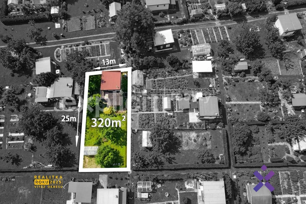 Součástí nabídky je i možnost dokoupení navazující zahrady s dřevěnou chatkou o výměře 261 m² a rozšířit tak celek na celkových 581 m².