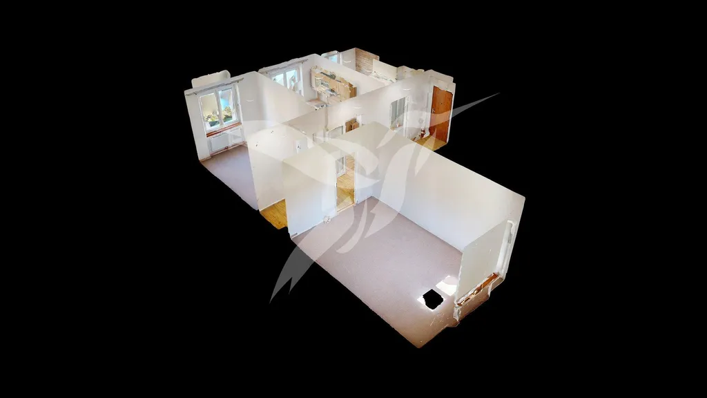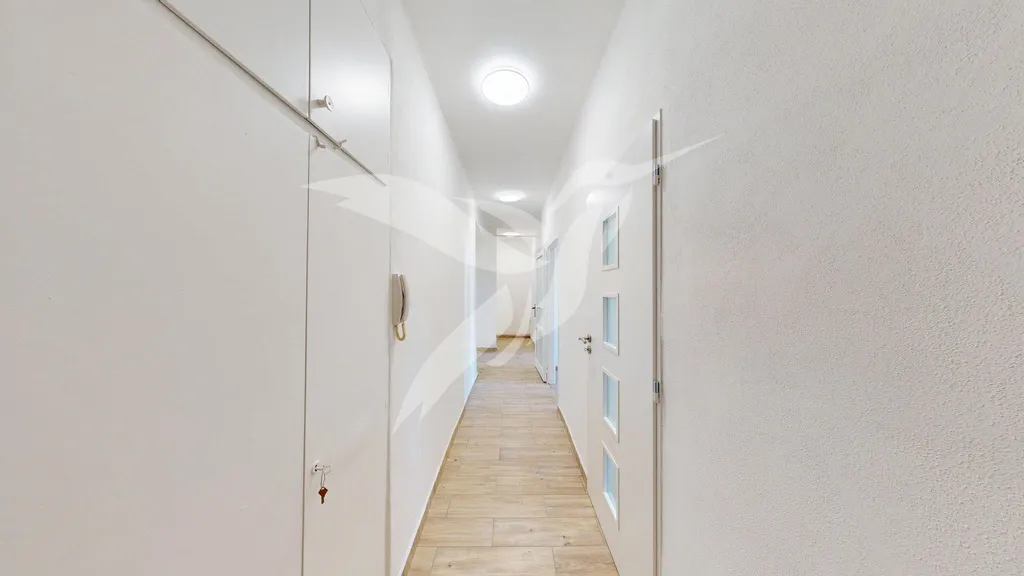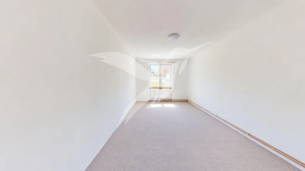 Nemovitost o velikosti 57 m2 se nachází v 1. NP cihlového domu bez výtahu a skládá se z předsíně se šatním prostorem, pokoje včetně kuchyňské linky, 2x samostatného pokoje, koupelny s toaletou a k bytu náleží i sklep situován v suterénu bytového domu. Bytová jednotka se pronajímá jako nezařízená a její součásti je kuchyňská linka se spotřebiči (varná deska + digestoř, elektrická vestavěná trouba), dále skříň v předsíni. Vytápění bytu je zajištěno elektrickým kotlem a ohřev vody elektrickým bojlerem. Předností je skvělá lokalita v klidné části Domažlic s občanskou vybaveností i dostupnosti MHD - v docházkové vzdálenosti školka, obchod, dětské i sportovní hřiště.