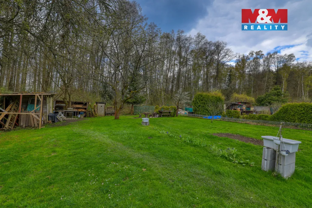 Součástí je udržovaný rohový pozemek o rozloze 597 m² se vzrostlými ovocnými stromy, jezírkem, ohništěm, skleníkem (11 m²). K dispozici je také kůlna s dřevníkem a nářadím.