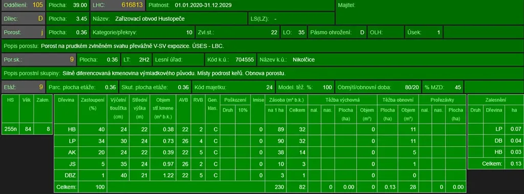 - p.č. 4360 vedená jako lesní pozemek o celkové výměře 3 712 m2, z toho vlastníme podíl 2/3 tedy 2 475 m2 (stáří lesa 90 let - zastoupení dřevin habr, lípa, akát, jasan, dub).