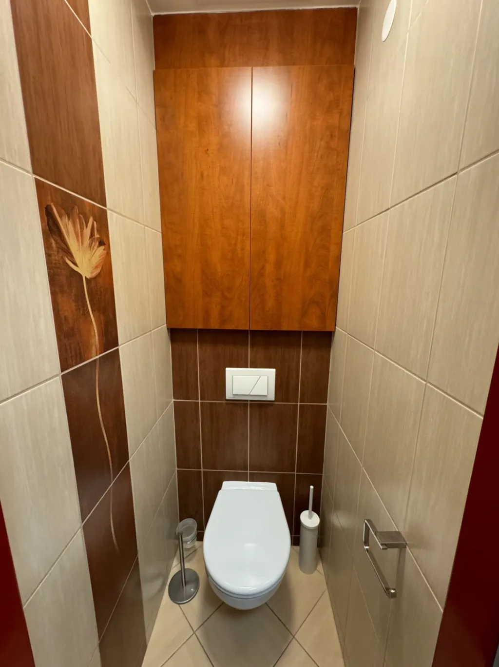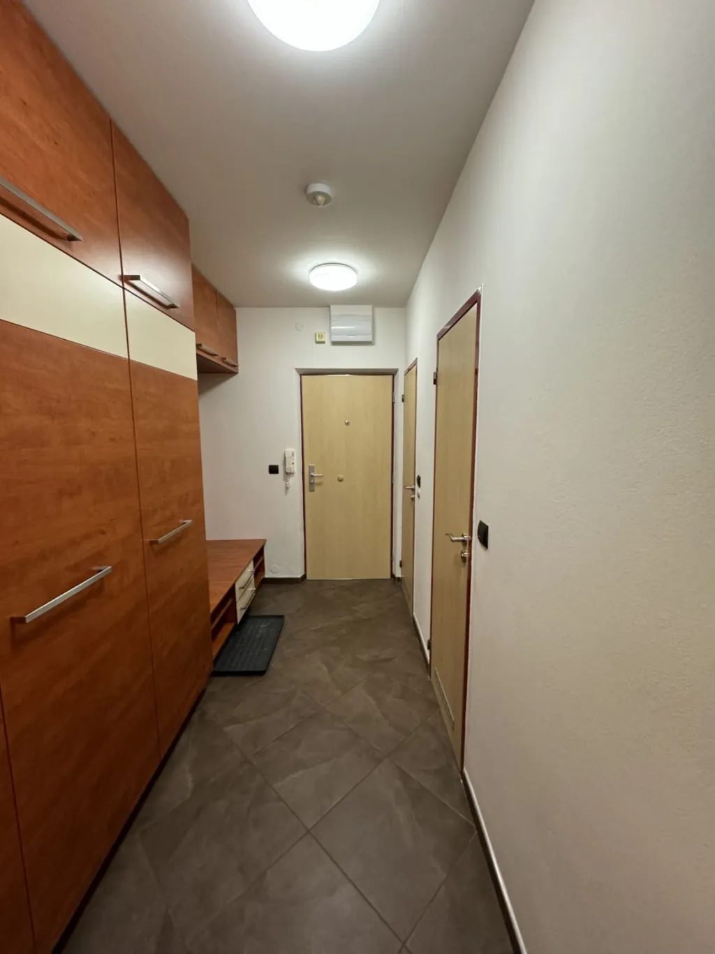 Na chodbě jsou velké vestavěné skříně a prostor s věšákem na odložení svršků a uložení obuvi.