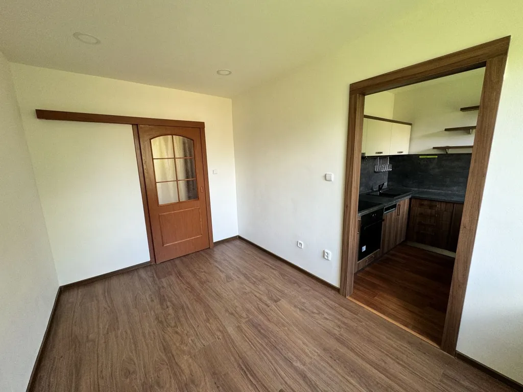 Z chodby se dostaneme do dvou neprůchozích pokojů a třetí pokoj je průchozí do kuchyně. Místnost u kuchyně lze využít například jako jídelnu.