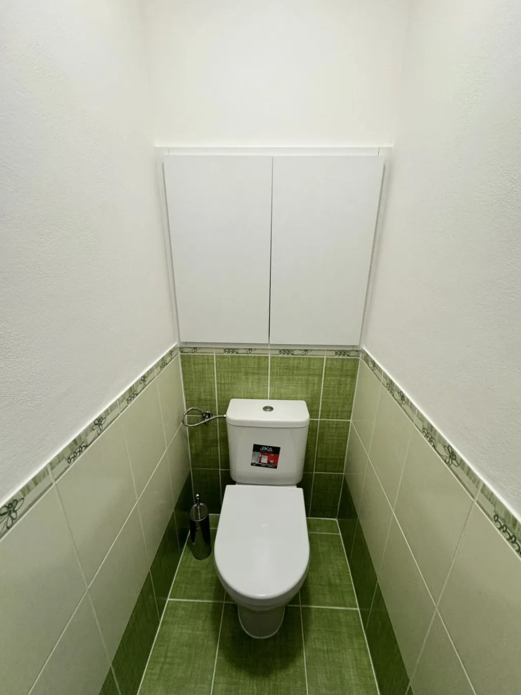 Koupelna disponuje vanou se zástěnou, umyvadlem se skřínkou a osvětlením. Toaleta je umístěna samostatně.