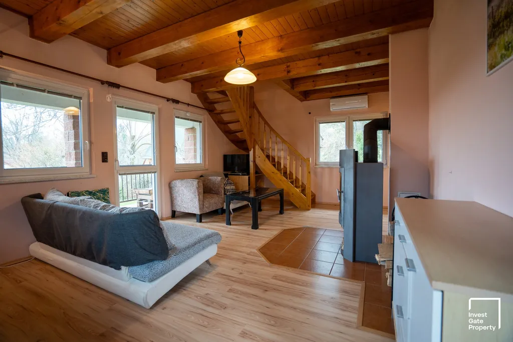 Zděný rekreační dům o dispozici 3+kk ve dvou podlažích se nachází na vlastním pozemku o rozloze 645 m² a díky své poloze nabízí maximální soukromí i skvělé možnosti pro relaxaci i aktivní odpočinek.