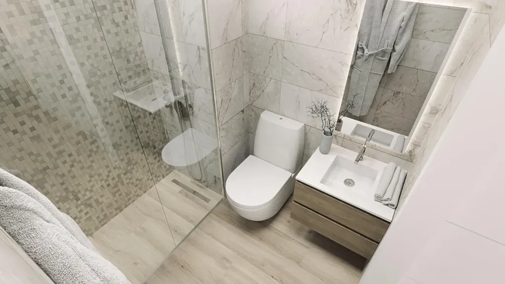 Ložnice mají vestavěné skříně a koupelny jsou plně vybavené nábytkem, zrcadly, podlahovým vytápěním a sprchovými zástěnami.