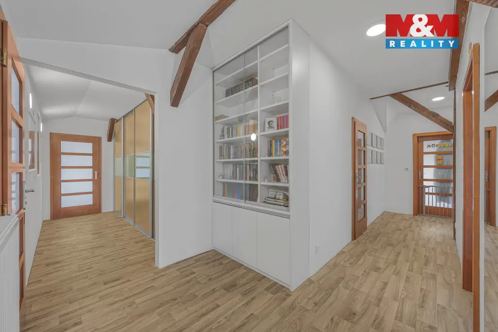 Celoplošné podsklepení spolu s pěti garážovými stáními vytváří perfektní zázemí pro podnikání, dílnu nebo bezpečné parkování vozového parku.