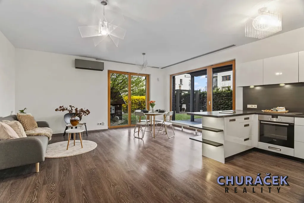 Ve výhradním zastoupení nabízíme ke koupi nadstandardní byt o dispozici 3+kk se soukromou zahrádkou, situovaný v oblíbeném rezidenčním projektu Zelené město, v ulici V Třešňovce, Praha.