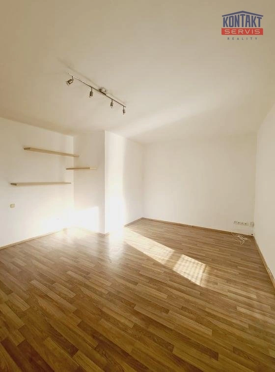Dispozice bytu: prostorná vstupní hala s vestavnou skříní, neprůchozí pokoj, velká koupelna s rohovou vanou, WC a bidetem. Dále pak kuchyňská linka s plynovým sporákem, el. troubou a myčkou. Z obýváku je vstup na balkón s výhledem do zeleně na jižní stranu. Součástí nájmu je sklep cca 5 m2.