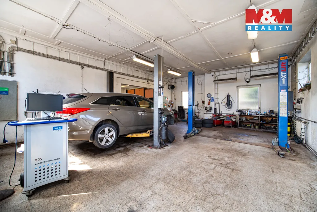 Součástí je zázemí pro autoservis – geometrie, měření emisí, servis klimatizací a diagnostika. Prostory lze využít také jako showroom, sklad, dílnu nebo kanceláře.