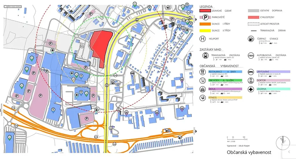 • dopravní infrastruktura – silniční, cyklistické a pěší komunikace, parkoviště odpovídající kapacitě