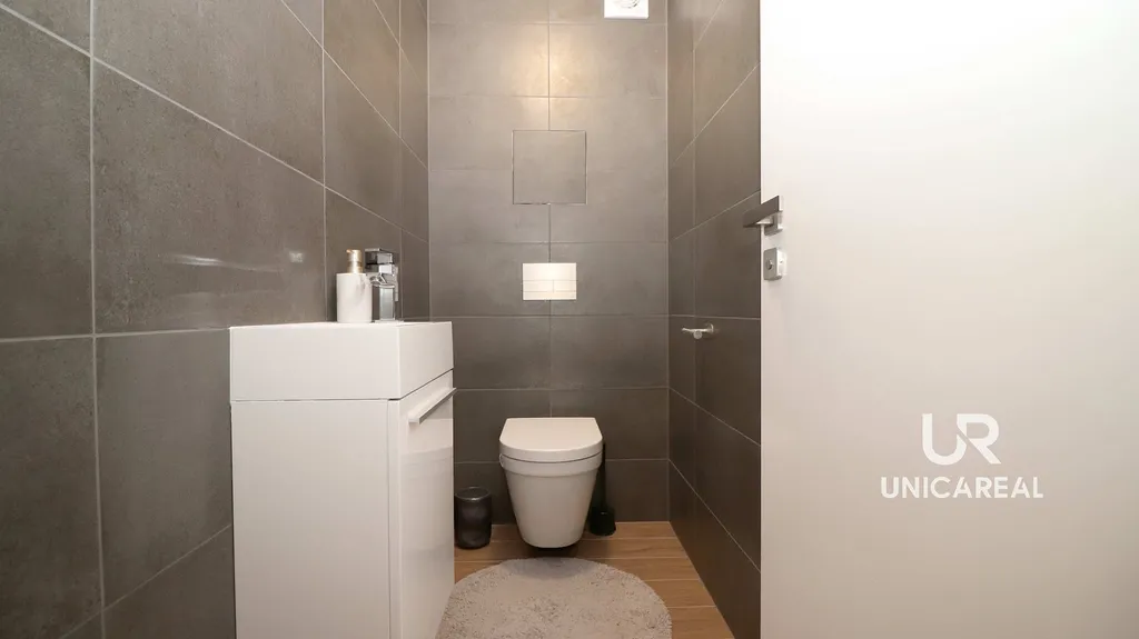 Prostorná koupelna s vanou a sprchovacím koutem, samostatné WC s umyvadlem, zde byla použita kvalitní dlažba (Azulev a Just Life).