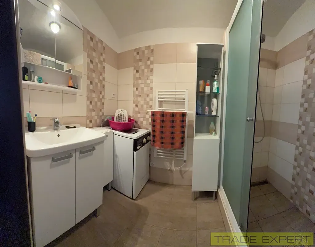 Dispozice: Vstup na verandu a dále do kuchyně. V pravé části domu se nachází klidová zóna se dvěmi neprůchozími ložnicemi. V levé části pak obývací pokoj s krbovými kamny a vstupem do podkroví a dále koupelna se sprchovým koutem, samostatné WC a technická místnost. V patře - (zatepleném podkroví obložené dřevem) se nachází prostorná hobby místnost s posezením a velkým kulečníkovým stolem a dvě samostatné, prostorné ložnice.