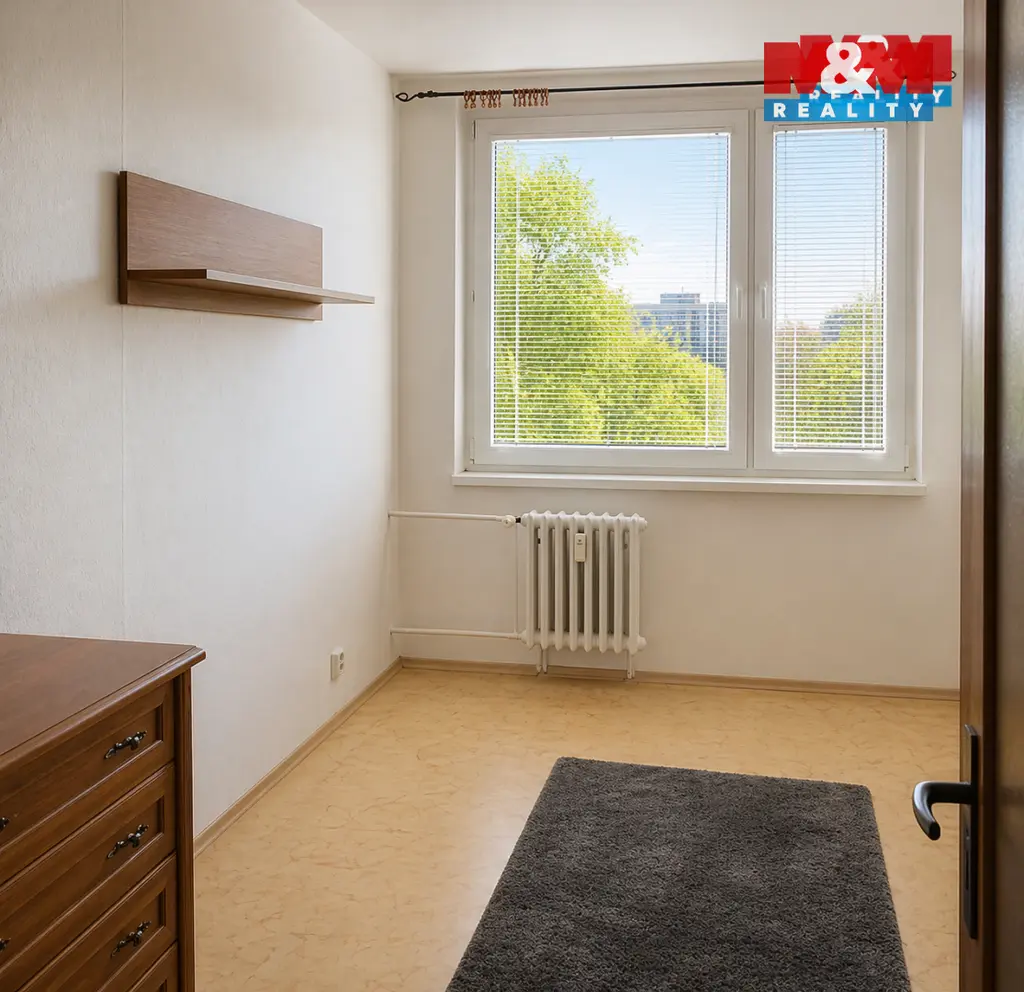 Ve 4. patře panelového domu s výtahem. S výhledem na vodní nádrž a vzrostlé stromy. V bytě proběhla přestavba bytového jádra s novou koupelnou a kuchyní.