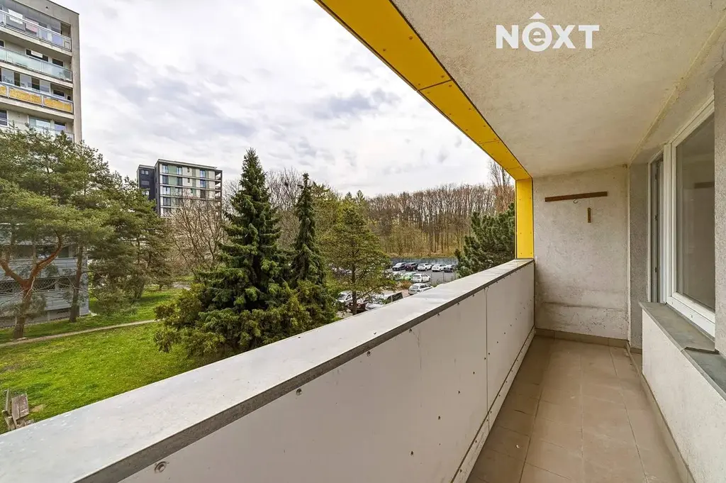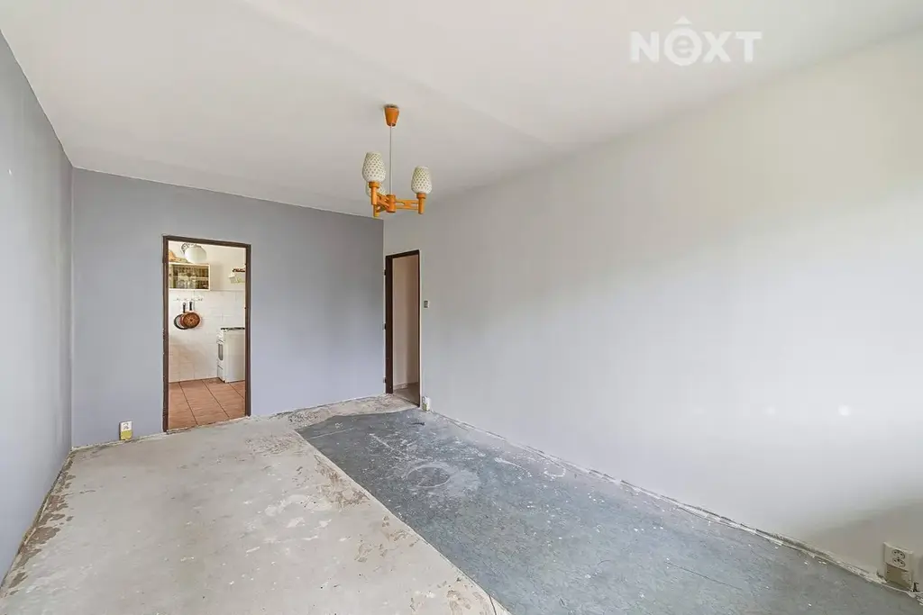 Dispozice je přehledná a funkční: obývací pokoj (17,21 m²) se vstupem na lodžii orientovanou na východ, samostatná ložnice (11,52 m²), kuchyně s oknem orientovaným na jih (6,43 m²), koupelna (2,25 m²), oddělené WC (1,05 m²) a prostorná chodba (7,24 m²). Byt je kompletně vyklizený a připravený na rekonstrukci – původní lina jsou odstraněna, takže můžete rovnou začít tvořit bez zbytečných demoličních prací.