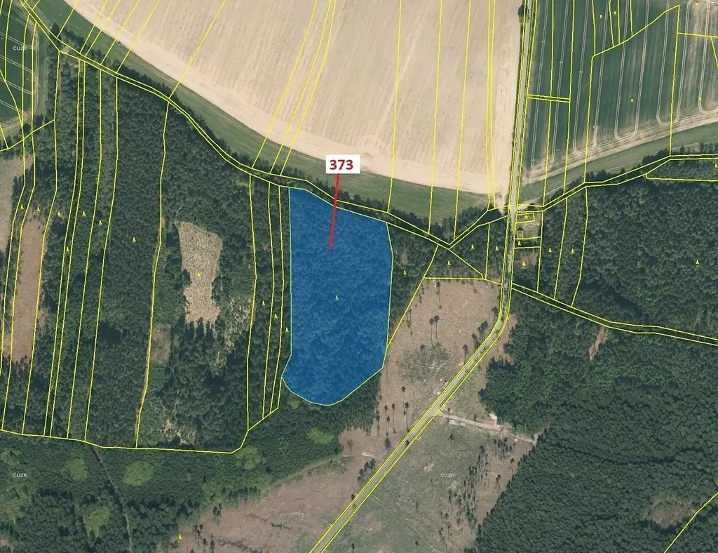 Lesní pozemek o výměře 25 608 m2, parcelní číslo 373, podíl 1/1, katastrální území Kajetín, obec Choustník, obec s rozšířenou působností Tábor, okres Tábor, Jihočeský kraj. Částečně po těžbě.