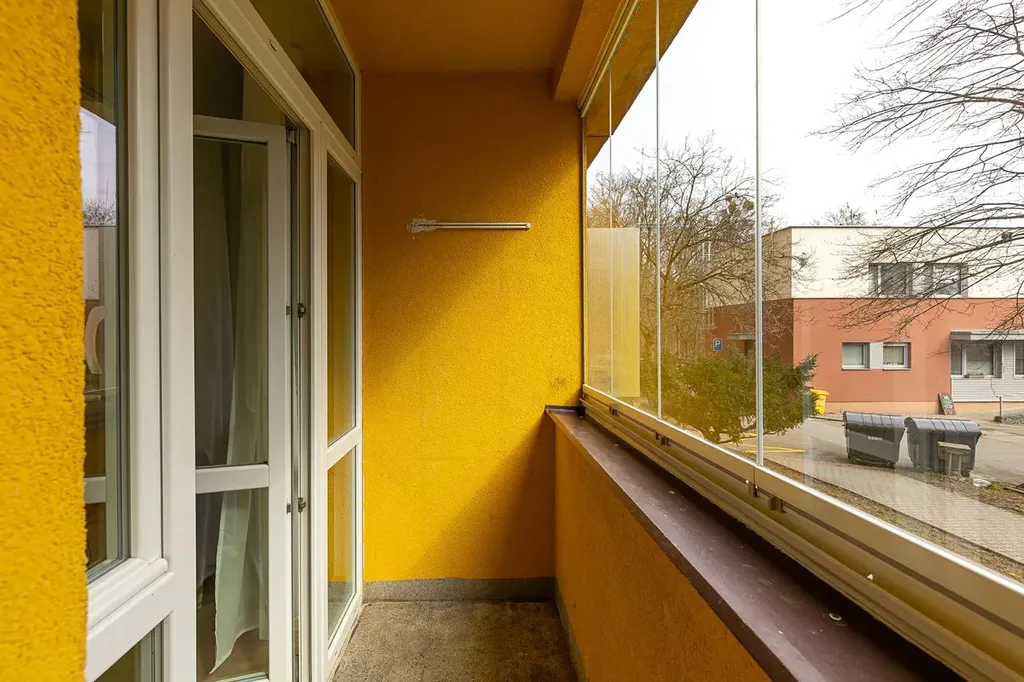 Obývací pokoj i ložnice jsou neprůchozí. Z obývacího pokoje je vstup na zasklenou lodžii.