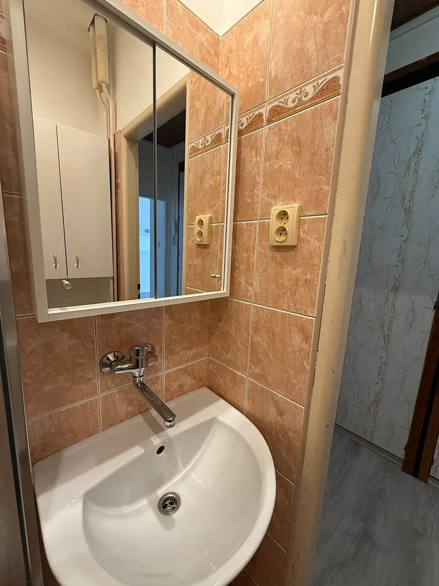 Vstupními dveřmi vejdeme do velké předsíně s vestavěnými skříněmi o velikosti cca 6,12 m2, ze které je následně vstup do dalších místností. V předsíni se nachází samostatná toaleta o velikosti cca 0,8 m2 a koupelna o velikosti cca 2 m2, která disponuje sprchovým koutem a umyvadlem. Z předsíně je také vstup do prostorné kuchyně o velikosti cca 9 m2, která je vybavena sporákem s pečící troubou, ledničkou s mrazákem a spížkou. Na konci chodby je vstup do obývacího pokoje o velikosti cca 21,7 m2, ze kterého je vstup na balkón o velikosti cca 4 m2 s krásným výhledem do zeleně. Na pravé straně obývacího pokoje se nachází vstup do ložnice o velikosti cca 12,8 m2. Poslední pokoj je o velikosti cca 9,3 m2.