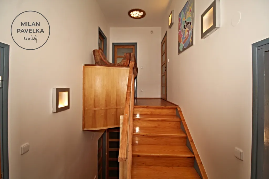 Vila o podlahové ploše 220 m² je doplněná o moderní technologie (tepelná čerpadla – dům - bazén, fotovoltaická elektrárna s výkonem 10kW, krbová kamna, klimatizaci, atd) Vnitřní vybavení: 4 pokoje, 2 obývací pokoje, kuchyňský kout, 2x koupelna, WC, sauna, sklep - sklady). Podlahová krytina v domě je dřevěná nebo keramická dlažba. Okna a dveře jsou dřevěná, vyráběná na zakázku v původním provedení. Okna jsou izolační dvoj sklo s předokenními žaluziemi nebo okenicemi.