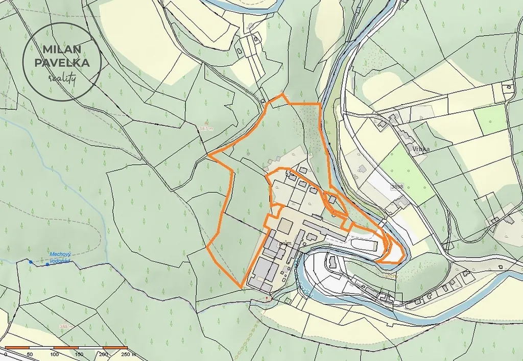 Skryje - prodej vily od arch. Fuchse, pozemek 50.987 m²