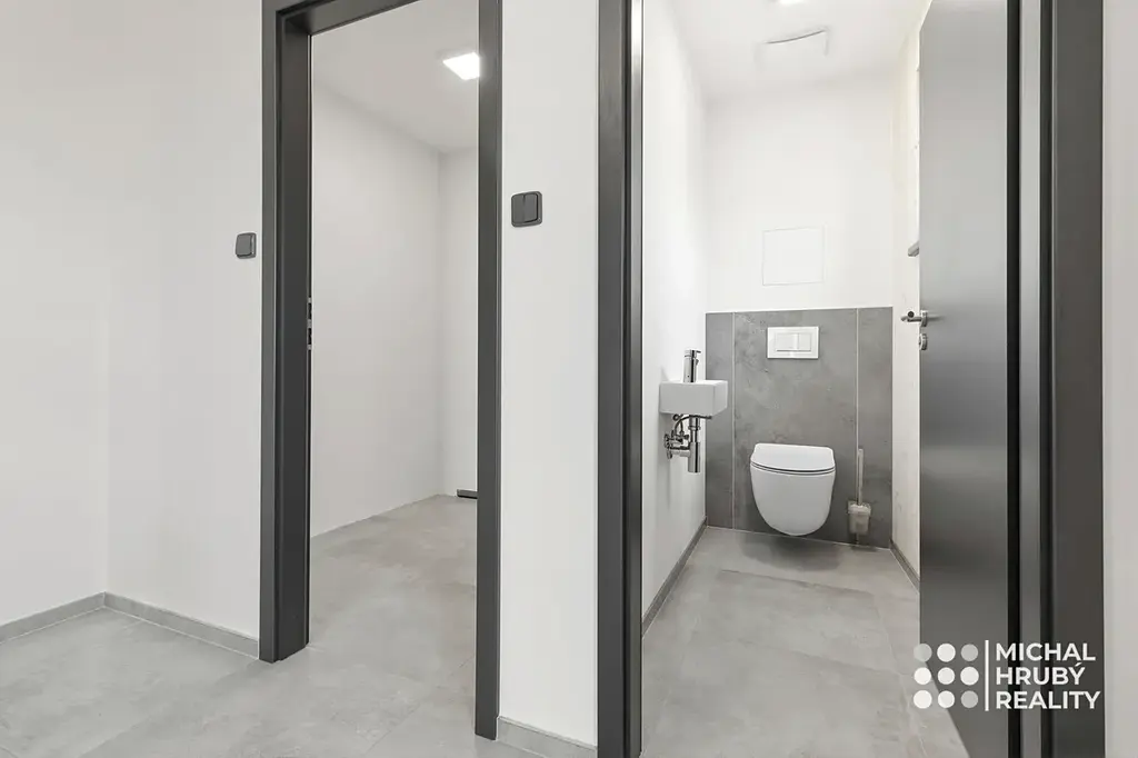 V rámci ceny máte také vlastní kryté parkovací stání se sklepní kójí přímo u domu. Parkoviště je dostupné pouze pro rezidenty. Ve spodním patře jsou dva komerční prostory – kancelář a ordinace dětského lékaře.