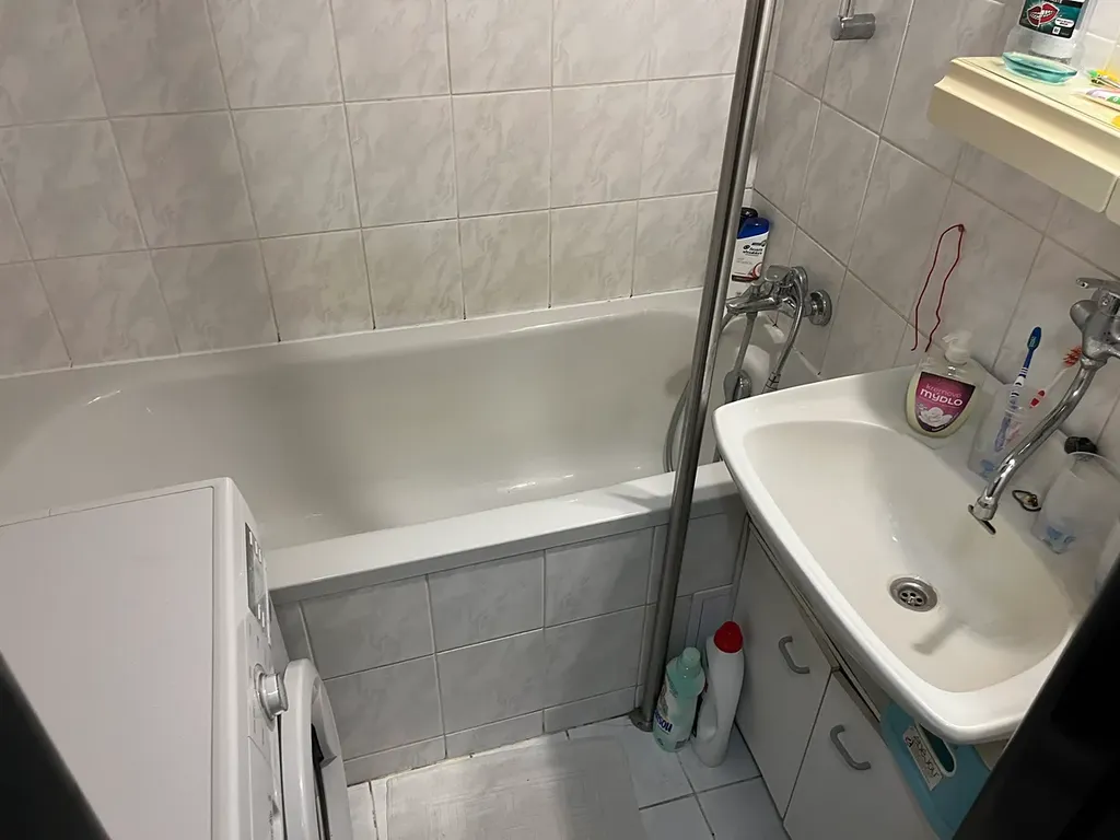 Samostatná kuchyně orientována k severu, prostorný neprůchozí obývací pokoj s lodžií na jih, kde lodžie disponuje kompletním otevíracím prosklením, dále neprůchozí pokoj - ložnice s oknem na stinnou severní světovou stranu, koupelna s vanou, umyvadlem a místem pro pračku, samostatné WC, vstupní chodba s prostorem pro vestavěnou skříň.