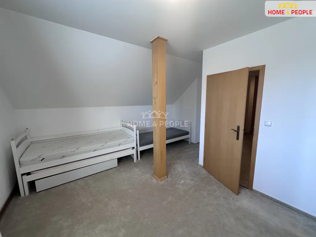 3 pokoje, komora, koupelna (sprcha, vana, 2 umyvadla, WC), vstup na půdu