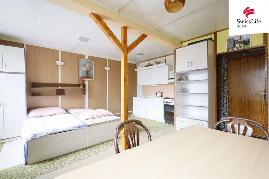 Na pozemku 553m2 je v chatě jak elektřina, tak i užitková voda - pitná je nedaleko, chata je z části podsklepená a vytápí se dřevem. A víte co, je to chata, zámek si z ní můžete udělat.