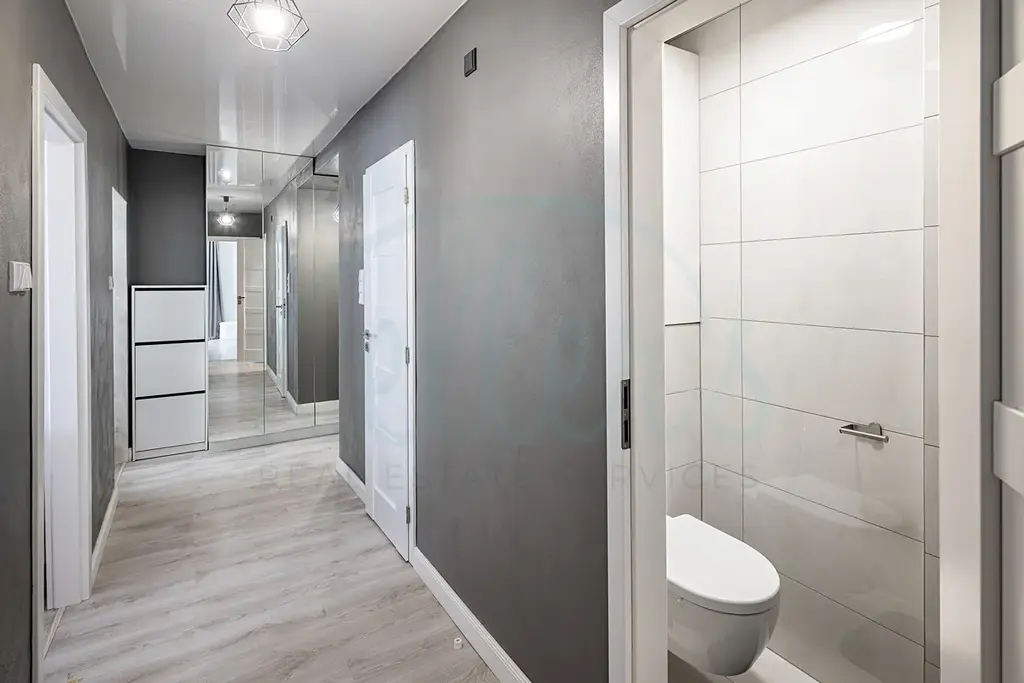 Byt prošel rekonstrukcí a nabízí praktické dispoziční řešení – všechny pokoje jsou neprůchozí. Koupelna je samostatná, oddělená od toalety. Hlavní ložnice je chytře rozdělena posuvnými dveřmi na spací a šatní část, což zajišťuje dostatek soukromí a komfortu. Druhý pokoj je aktuálně využíván jako dětský, snadno jej však lze upravit na obývací pokoj dle potřeb nového majitele.