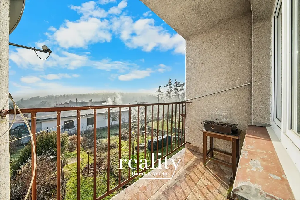ložnice s balkónem, dva další pokoje, chodba a koupelna s toaletou