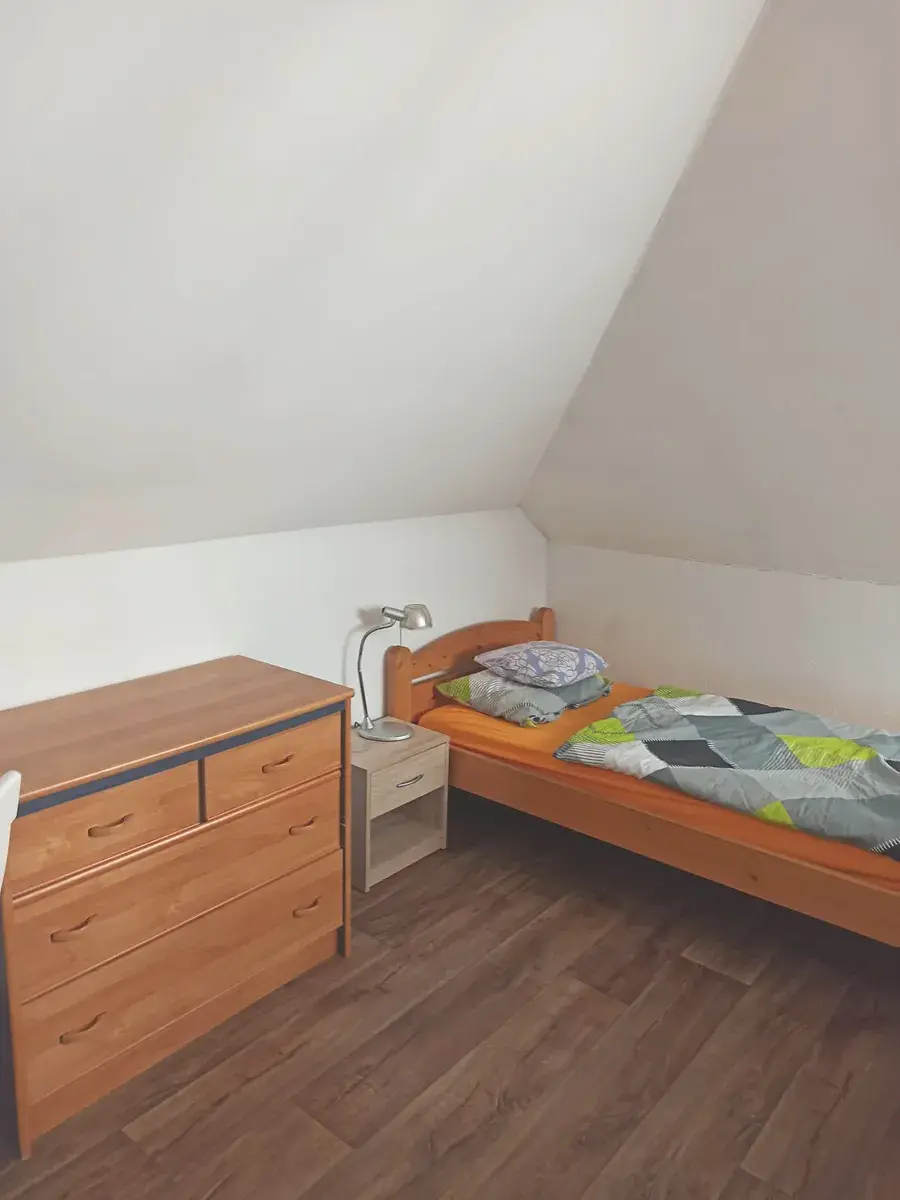 Pokoj s příslušenstvím o užitné ploše 29 m² je plně vybaven, k dispozici je pračka, lednička, mikrovlnka, vařič a konvice. Pokoj je připraven k nastěhování.