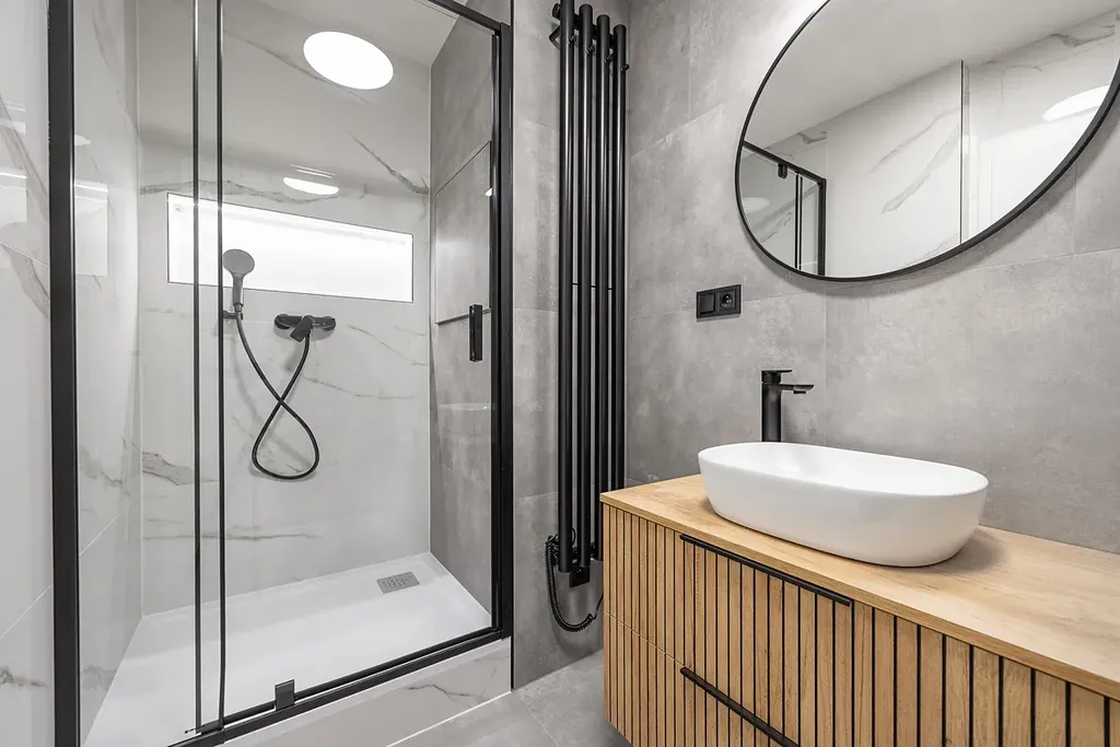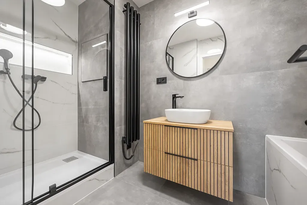 - nová sanita (vana, sprcha, umyvadlo, skříňka, toaleta)