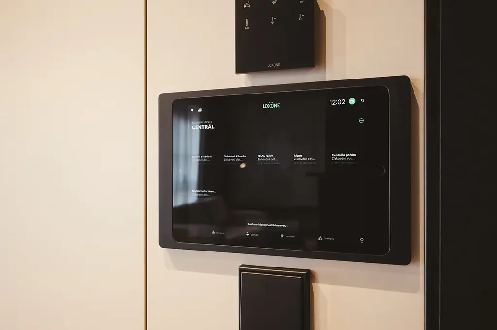 Kuchyňská linka je vyrobena na míru, doplněná pracovní deskou z přírodního kamene a spotřebiči značky Siemens. Byt je dále vybaven systémem chytré domácnosti Loxone, designovým italským nábytkem a textiliemi na míru. Celek působí čistě, promyšleně a nadčasově. Samozřejmostí je také optické internetové připojení s rychlostí až 2 Gb/s.