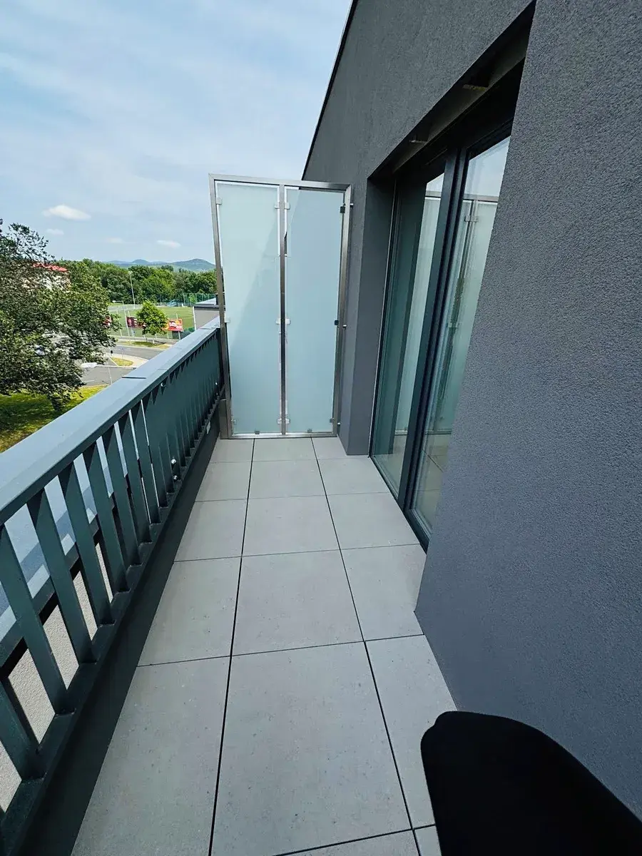 K dlouhodobému nájmu nabízím byt o dispozici 2+KK s terasou ve 4 NP (výhled směr Lovoš) Rezidence Zámecká. Byt je částečně zařízen (kuchyňská linka, lednice, myčka). Výhodou bydlení v rezidenci jsou velmi nízké náklady na služby, primárně na vytápění. Kategorie PENB je B - úsporné bydlení. K bytu patří jedno parkovací stání za branou ve vnitrobloku domu.
