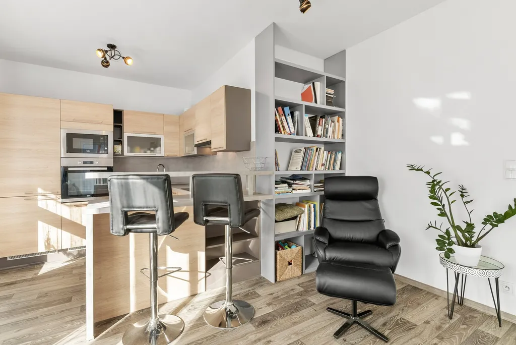 Byt se pronajímá plně zařízený včetně veškerých elektrospotřebičů. Kuchyňská linka je vyrobena na míru a vybavena troubou, varnou deskou, myčkou a digestoří. V ložnici se nachází vestavěné skříně a manželská postel. Koupelna je vybavena pračkou, sušičkou a umyvadlovou skříňkou. Obývací část nabízí rohovou pohovku, pohodlné křeslo, jídelní (barové) židle, knihovnu, komodu, konferenční stolek a televizor. V předsíni jsou k dispozici komody, botník a věšák.