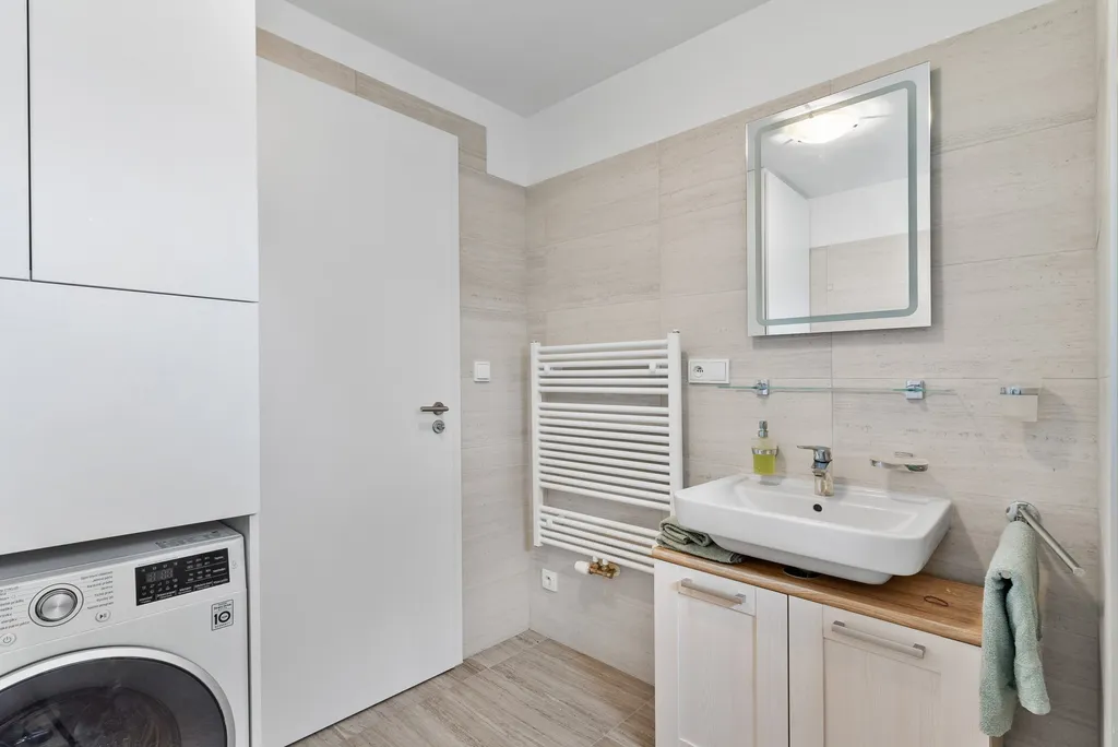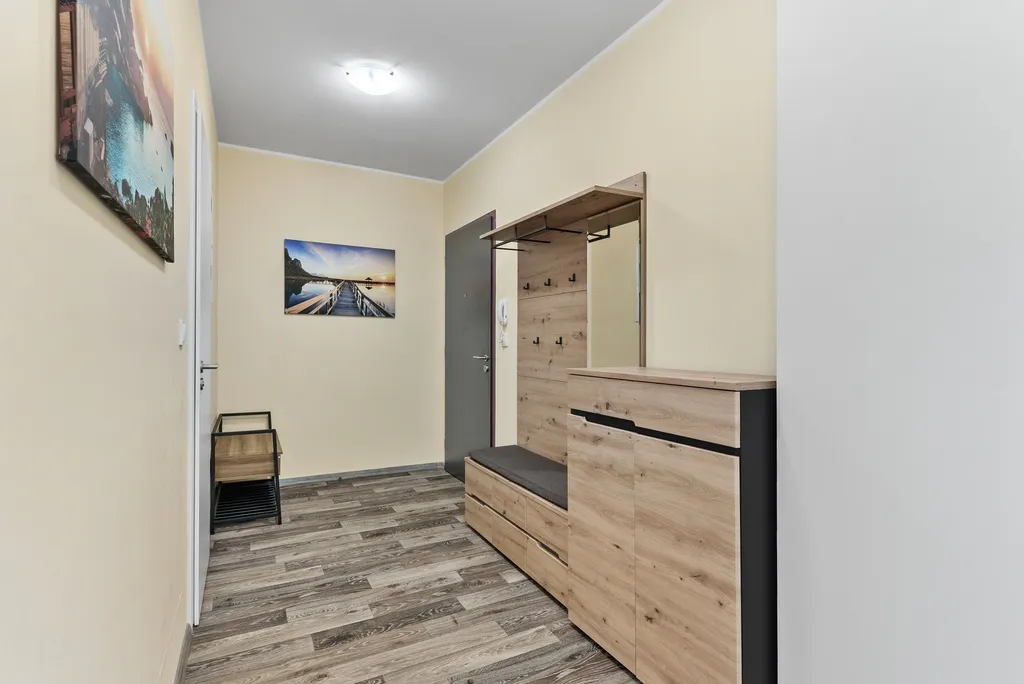 Nabízíme k pronájmu kompletně vybavený, moderní byt o dispozici 2+kk a podlahové ploše 59 m², situovaný v 7. patře novostavby v ulici U Nisy. Součástí bytu je balkon o velikosti 4,3 m².