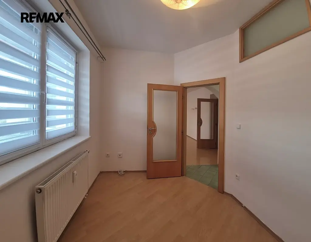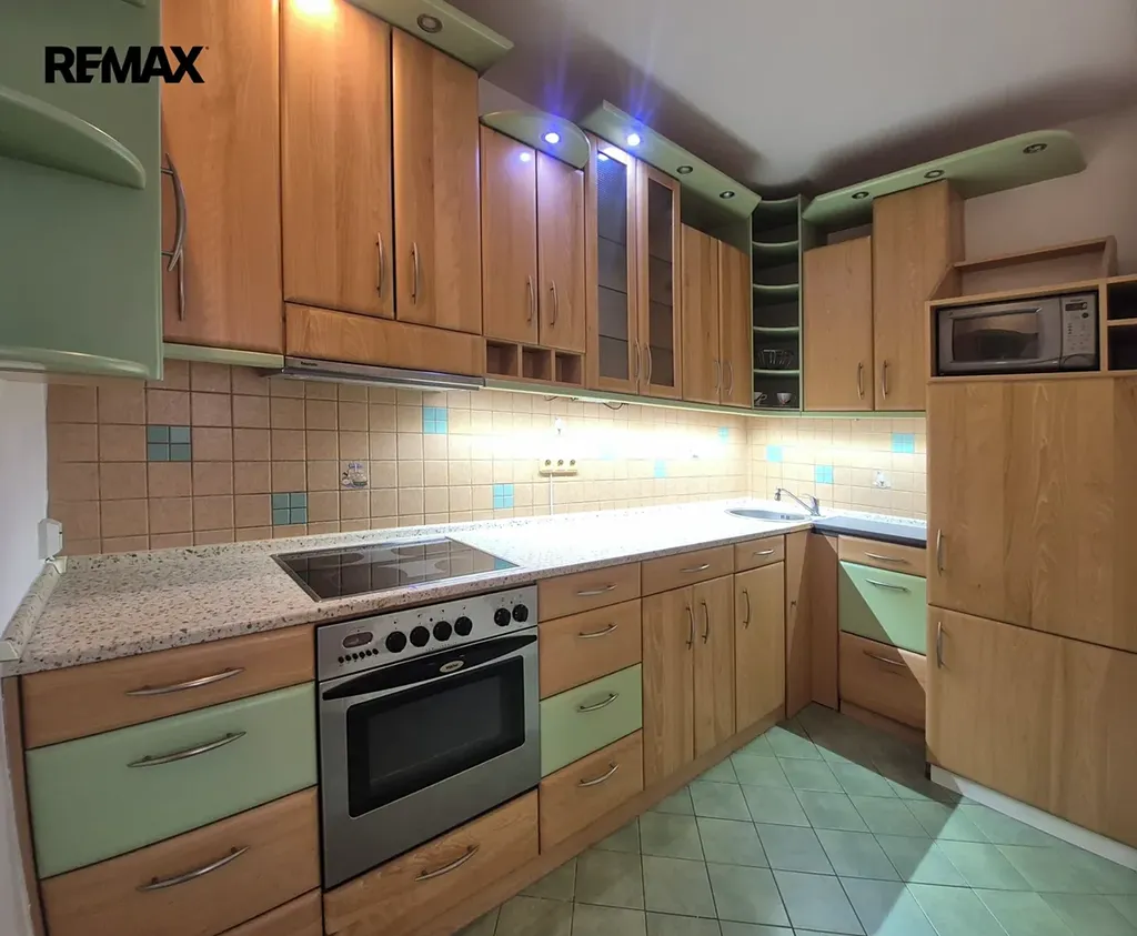 Byt má plastová okna včetně nových vnitřních rolet den/noc, venkovních rolet a pěknou prostornou kuchyňskou linku se spotřebiči.
