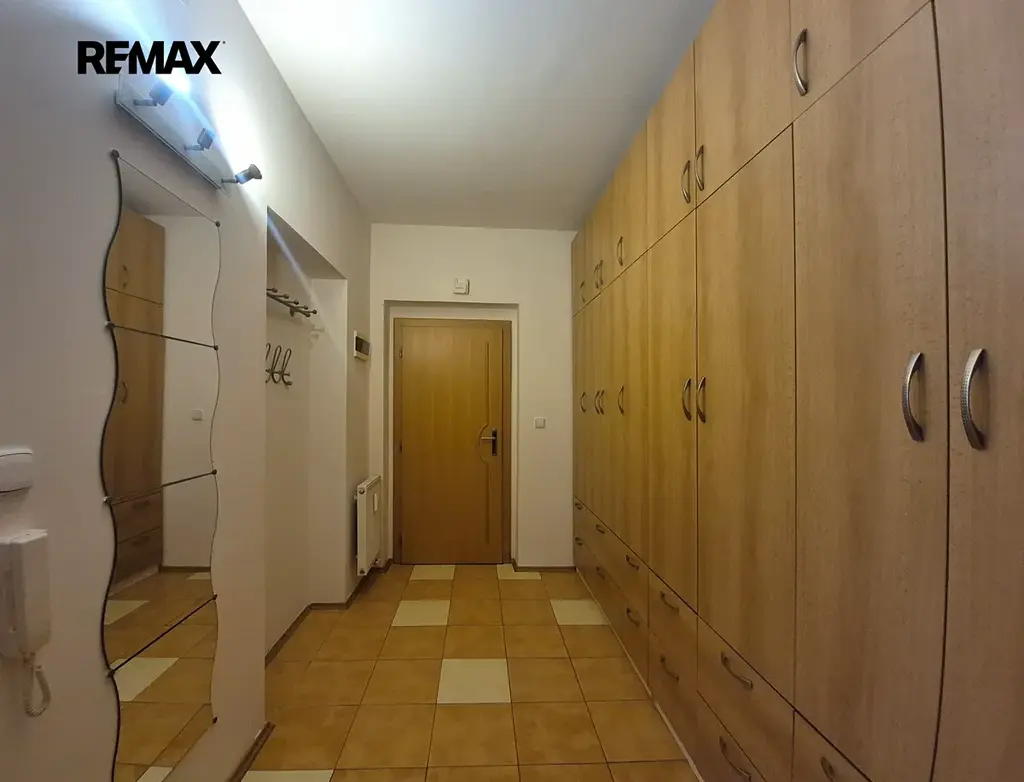 Byt se sestává z prostorné předsíně s vestavěnými skříněmi, obývacího pokoje, menší ložnice, kuchyně a koupelny s WC. K bytu patří zděný sklep o výměře 6,70 m2 v suterénu domu.