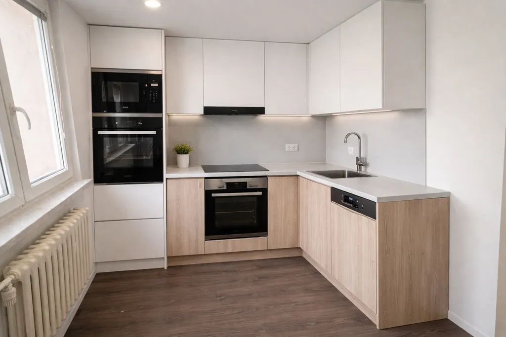 Největší výhodou tohoto bytu je absence kuchyňské linky. Nemusíte se smiřovat s cizím vkusem – pro byt jsme nechali vypracovat profesionální 3D vizualizace, které vám ukážou, jak může vaše budoucí kuchyně vypadat. Linku si tak pořídíte přesně takovou, jakou jste vždy chtěli.
