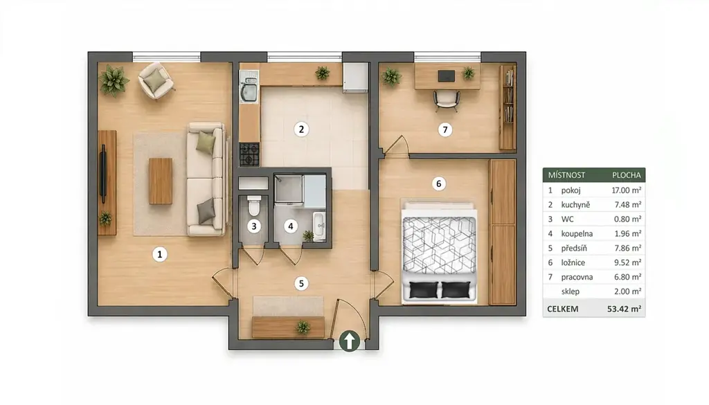 Praktické a dlouhodobě velmi žádané uspořádání 2+1 nabízí:
