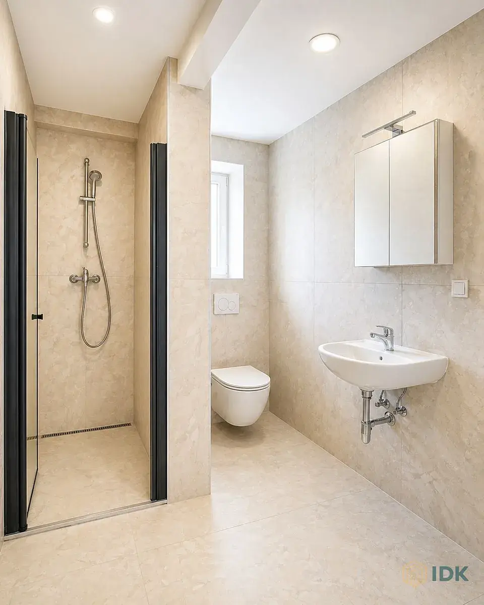 Byt disponuje obývacím pokojem s kuchyňským koutem, samostatným pokojem (ložnicí), koupelnou se sprchovým koutem a vstupní chodbou. Dispozice je účelná a poskytuje pohodlné bydlení pro jednotlivce či pár.