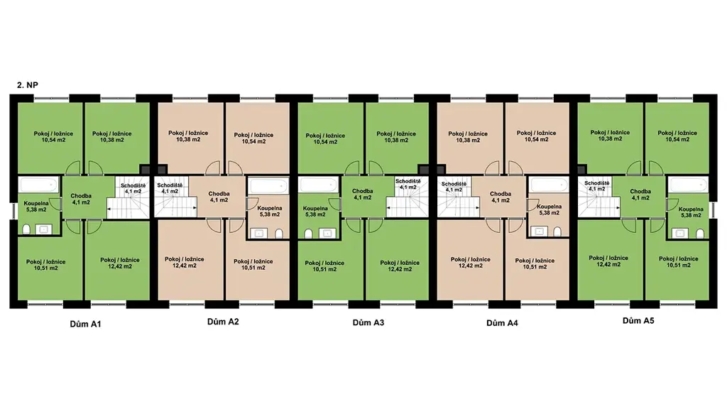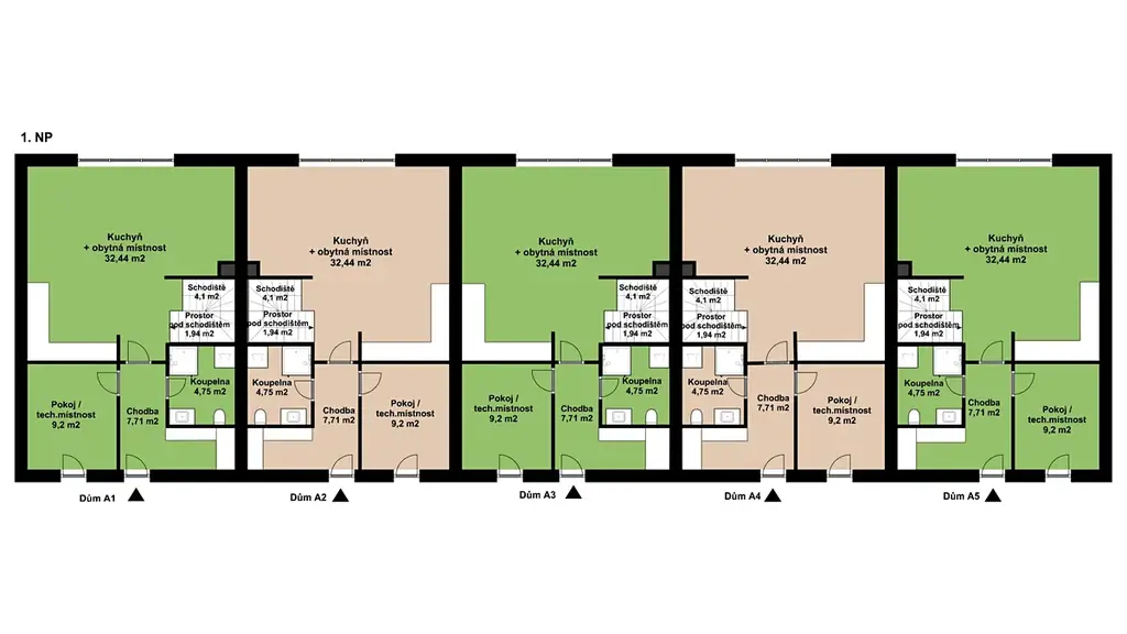 Domy jsou označené jako A1 – A5