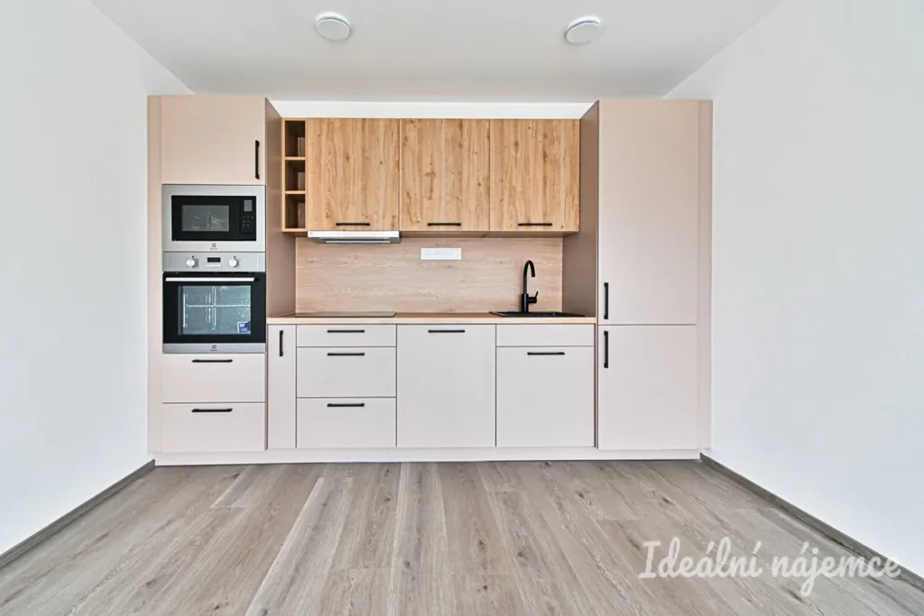 Kuchyňský kout disponuje indukční varnou deskou, elektrickou troubou, myčkou na nádobí a kombinovanou lednicí s mrazákem. Všechny spotřebiče jsou zcela nové a vestavěné.