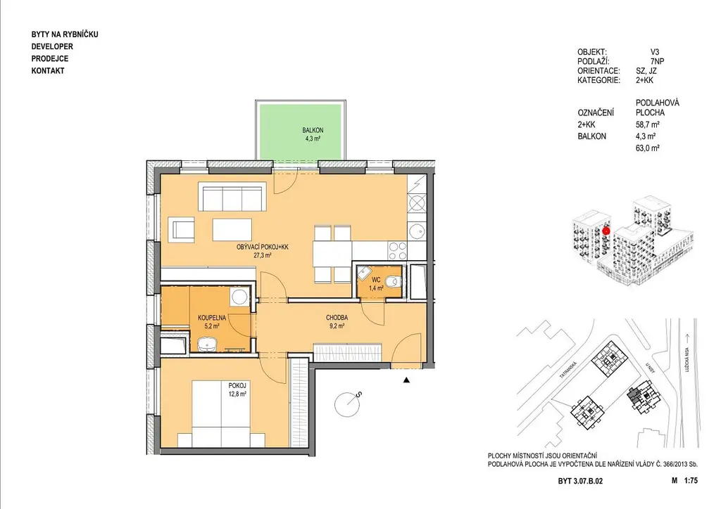 Nabízíme k pronájmu kompletně vybavený, moderní byt o dispozici 2+kk a podlahové ploše 59 m², situovaný v 7. patře novostavby v ulici U Nisy. Součástí bytu je balkon o velikosti 4,3 m².